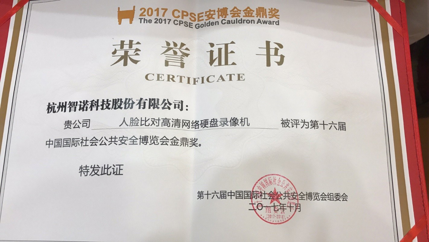荣获2017智慧城市推荐品牌 人脸比对NVR荣获金鼎奖