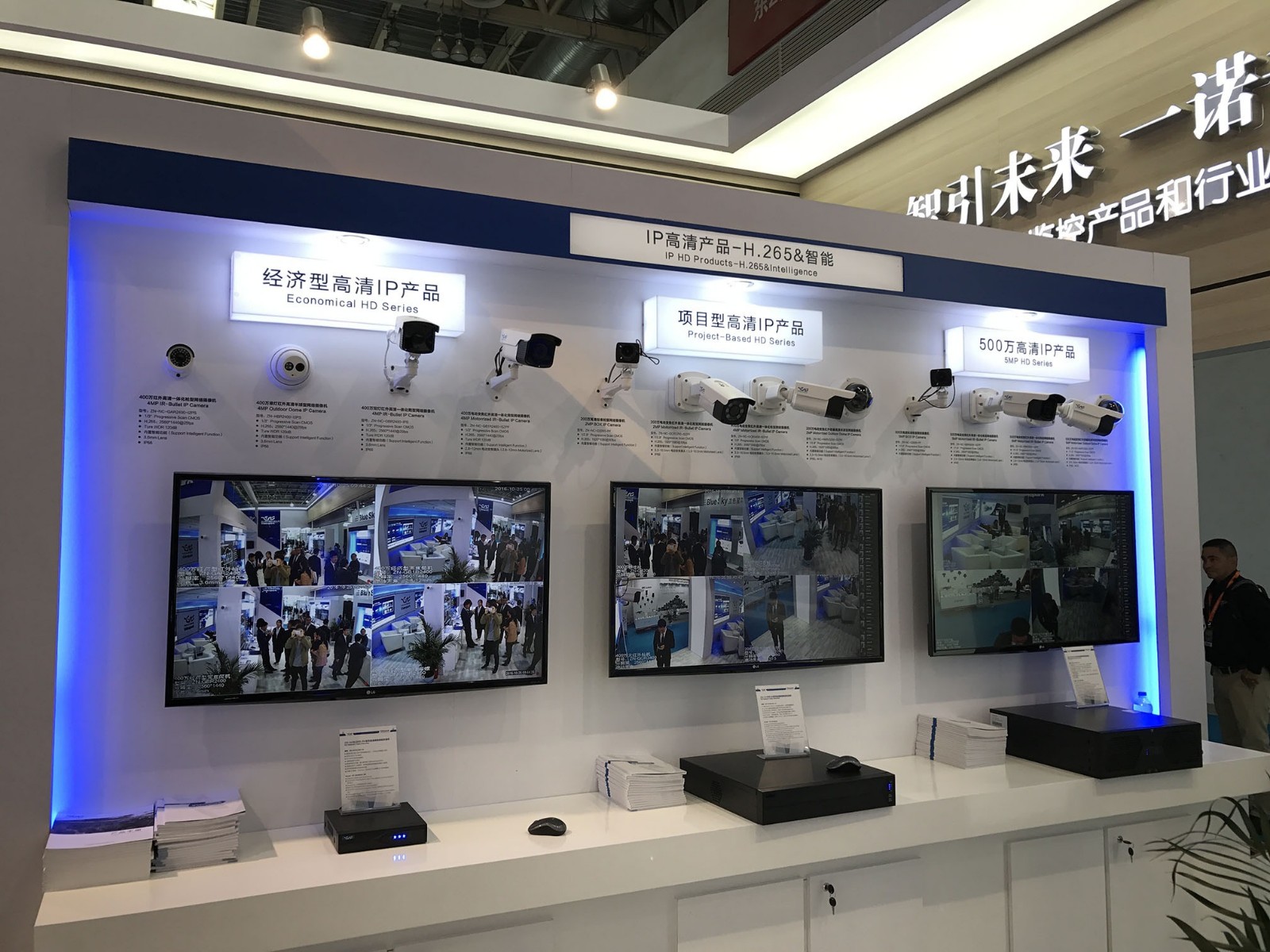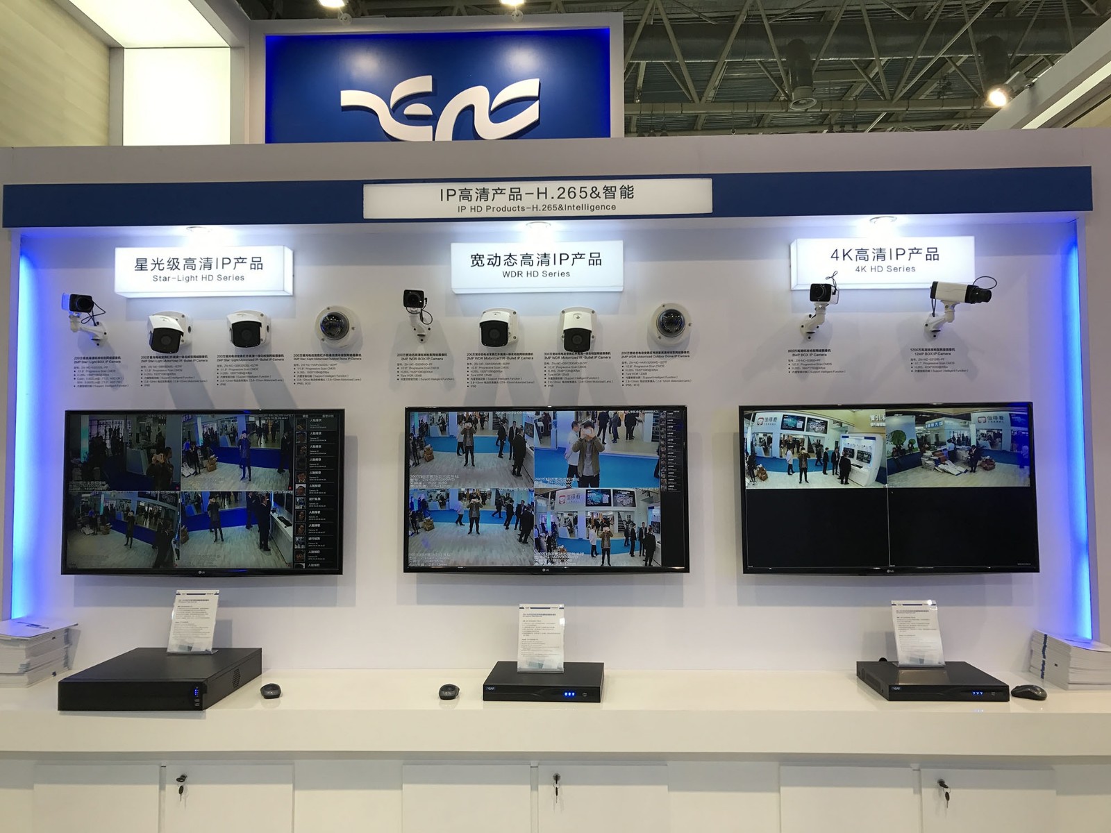 展区展出了开云online(中国)科技的星光级高清IP产品,宽动态高清IP产品,4K高清IP产品,经济高清IP产品,项目型高清IP产品,500万高清IP产品,同轴高清产品:200万高清产品、300万高清产品等产品。智能IPC支持人脸检测、周界入侵、物品遗留/盗移、跨越围栏、逆行检测、徘徊检测、密度检测、数量统计等高级智能化功能。